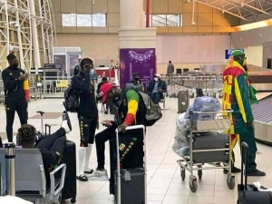 The aigles of Mali seemingly looking relaxed at the JKIA Nairobi after touching down in the country today.