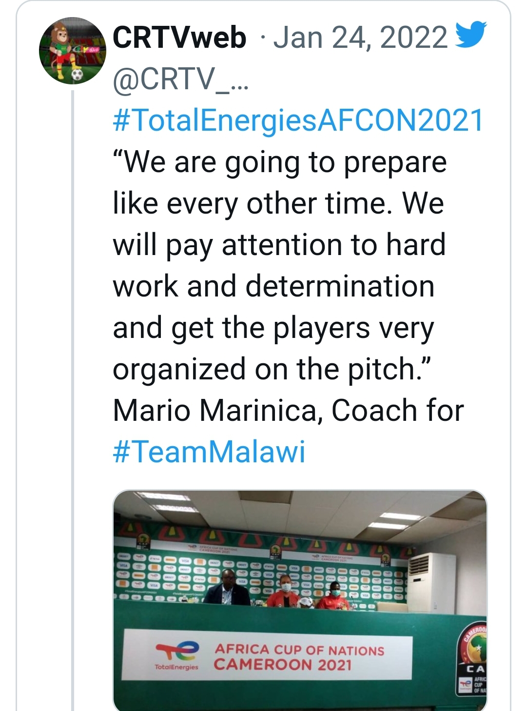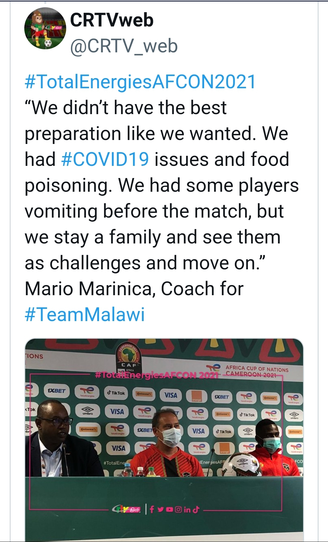 Malawi head coach Mario Marinica has hit out at 2021 Africa Cup of Nations organisers over poor conditions his team has had to contend with in Cameroon.