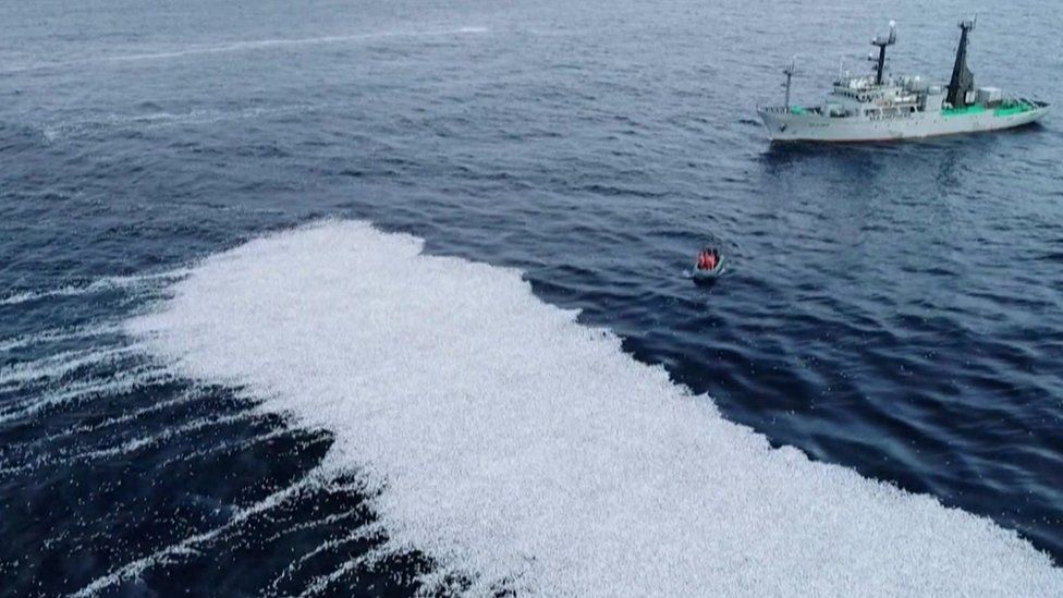 Sea Shepherd filmed the bank of dead fish, which it said covered 3,000 sq m