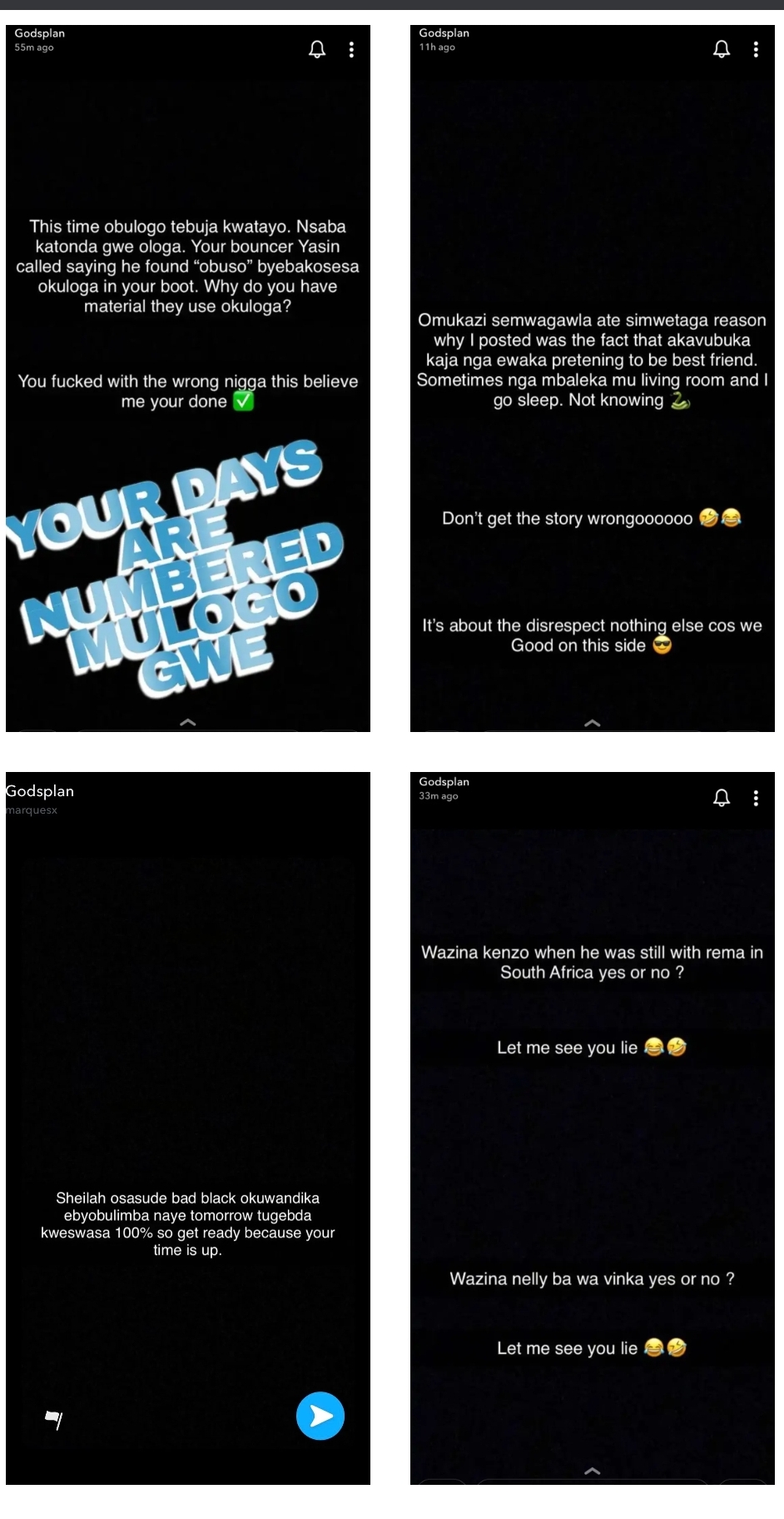 God’s Plan says Sheilah has also paid people like Bad Black to write falsehoods about him but he is willing to spill the truth which could end her career.