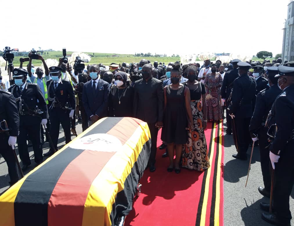 The Vice President Jessica Alupo, Speaker of Parliament Anita Among, Chief Justice Alfonse Owiny-Dollo, Deputy Speaker Thomas Tayebwa, cabinet ministers, Members of Parliament, friends and family, amid tears, received the body.