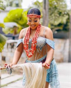 Rita Dominic aolewa kwa mara ya Kwanza akiwa na miaka 46. Mwigizaji huyo maarufu wa Nigeria amefunga ndoa ya kiasili na muonekano wake ni huo.