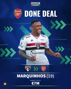 5. Marquinhos to Arsenal – Arsenal on their official website yesterday, confirmed the signing of Brazilian winger Marquinhos from Sao Paulo for a fee yet to be disclosed to the public.