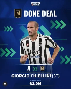 4.The Italian Giorgio Chiellini. Chiellini was officially unveiled by Los Angeles yesterday this come few days after completing his assignments at Juventus, after Giorgio Chiellini reached a verbal agreement with the club about some few days ago.
