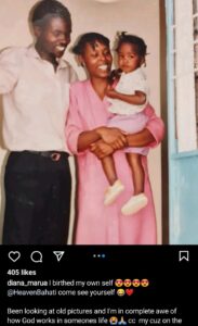 She wrote in the photo captions, “I gave birth to my individuality. Bahati, please visit heaven. Seeing God’s hand at work in people’s lives through looking at ancient photographs has left me in amazement.”