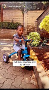 The Kenyan star then went ahead and detailed her present activities in the subsequent post. “I’m a stay-at-home mother now. Zero days off “as Nyamu put it.
