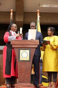 In this photo, Governor Johnson Sakaja of Nairobi is sworn into office. The former senator of Nairobi has been appointed county boss.