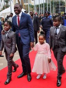 Before, I said that Sakaja was traveling with his lovely wife and kids. His daughter wore a beautiful outfit, while his two sons wore suits and dreadlocks.