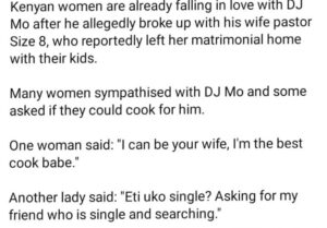 The video of a woman asking DJ Mo whether she can cook for him went viral after she made the request a few days after their breakup.