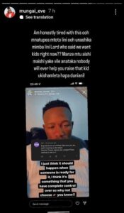 “Lord, who said we want kids right now?” “Am honestly bored of this ooh mnatupea mtoto lini ooh unashika mimba lini.” It all came to a head when Eve snapped.