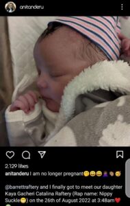 In the wee hours of August 26, 2022, @barrettraftery and I were blessed with the arrival of our daughter, Kaya Gacheri Catalina Raftery (Rap name: Nippy Suckle).