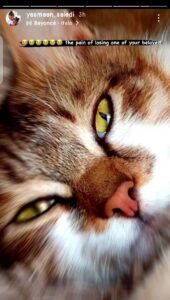 Yasmeen Said published a photo of her adorable kitten on Instagram and then wrote in a comment that she was in great agony after losing one of her cherished pets.