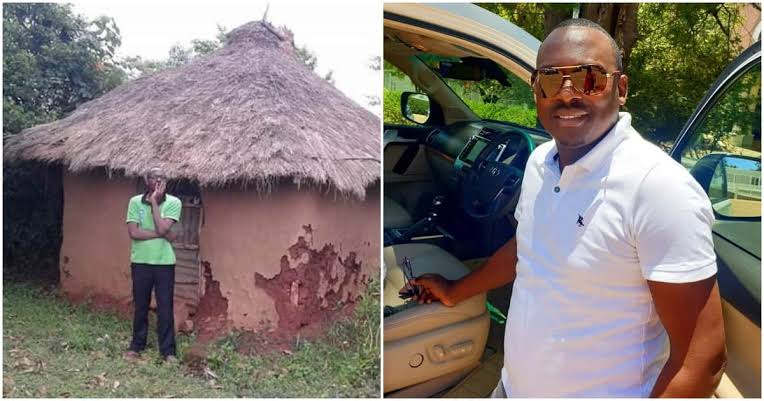 Ogolla uploaded two pictures, one of which showed him holding his cheeks in despair as he stood in front of a crumbling mud shack.
