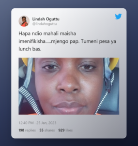 Lindah Oguttu, formerly a news anchor at KTN, is now employed by mjengo after being fired from her previous employment.
