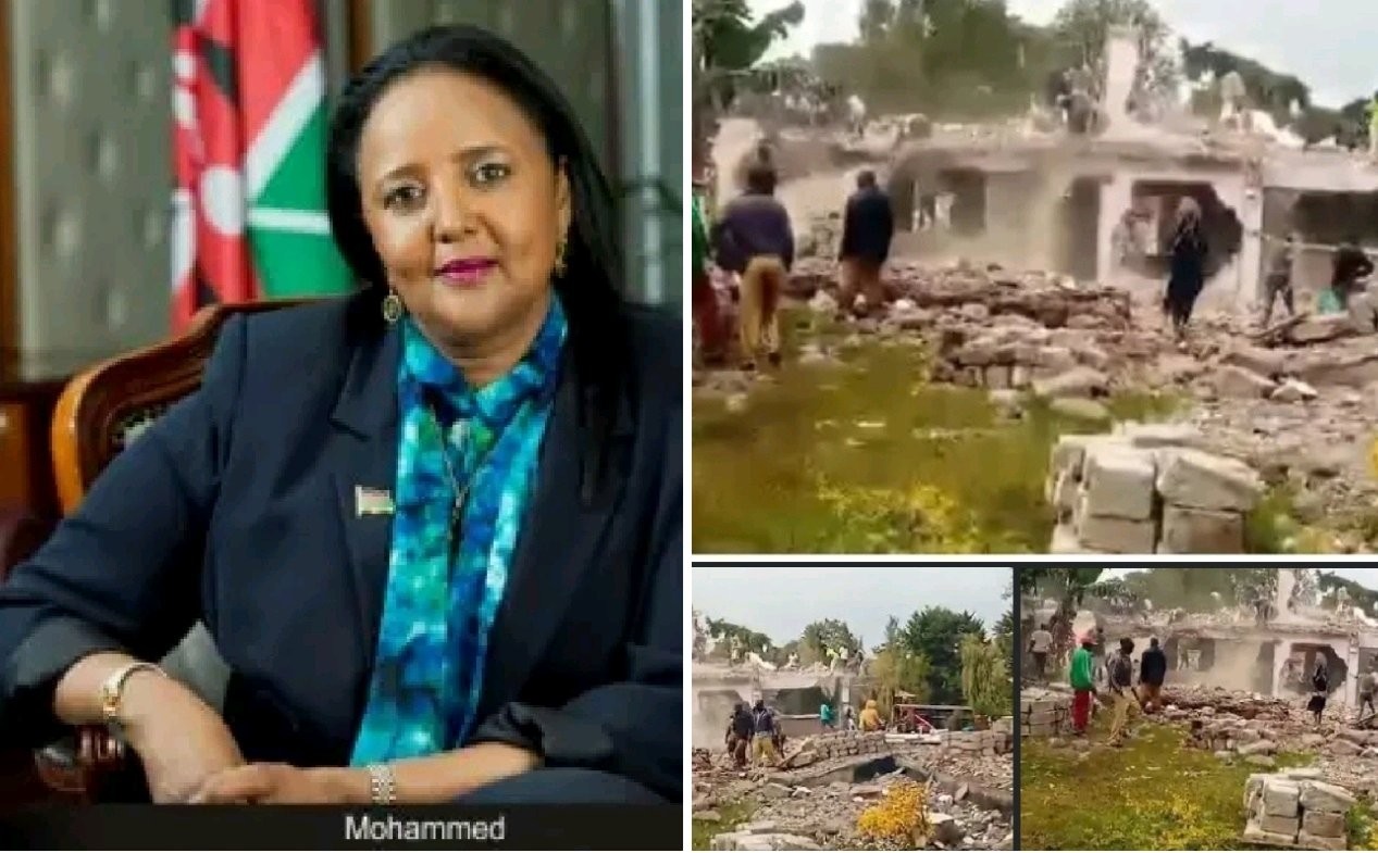 The government executed the demolition of former Foreign Affairs Cabinet Secretary Amina Mohammed’s residence in Kakamega County on Tuesday.