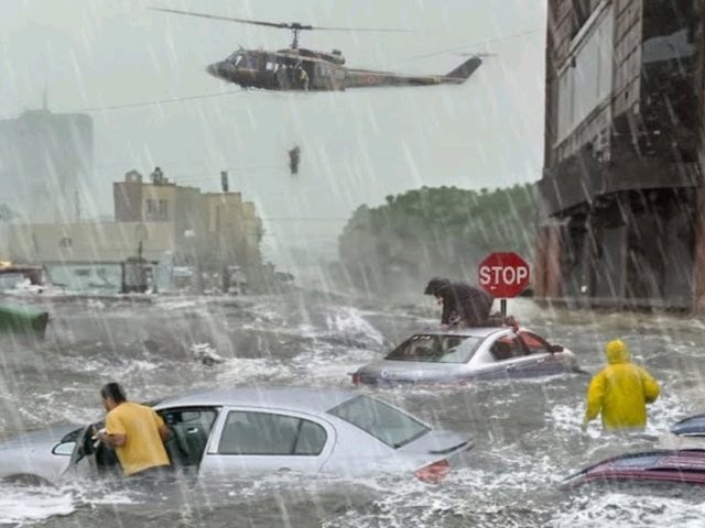 The unprecedented rainfall also affected major landmarks, with footage showing water rushing through shopping malls and flooding ground floors of residential buildings.