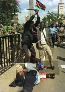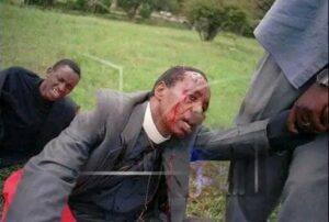KANU youth wingers almost killed Reverend Timothy Njoya, a leading critic of the Moi government, outside parliament in 1999.